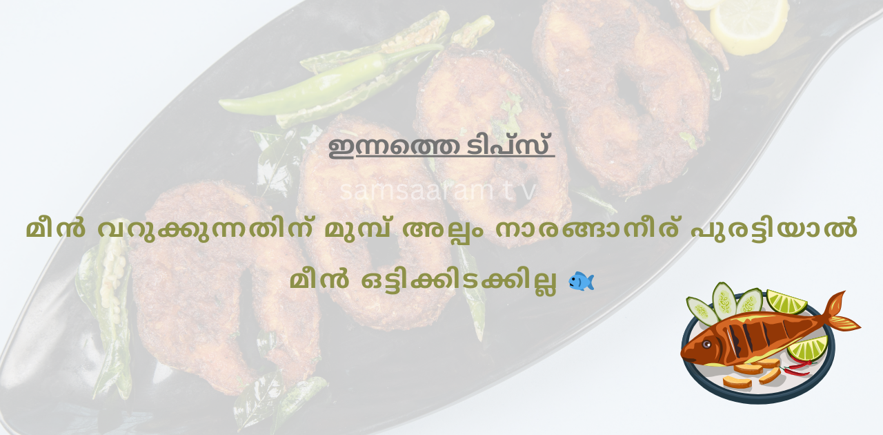 മീനിൽ അല്പം നാരങ്ങാനീര് പുരട്ടുന്നത് ഒരു ചെറിയ ടിപ്പായെങ്കിലും വളരെ ഉപകാരപ്രദമാണ്. നാരങ്ങാനീരിലെ സ്വാഭാവിക ആസിഡ് മീനിന്റെ പുറംഭാഗത്തെ അല്പം കടുപ്പമുള്ളതാക്കും. അതുകൊണ്ട് മീൻ പാനിൽ ഒട്ടിപ്പിടിക്കുന്ന സാധ്യത കുറയും, മറിച്ചിടുമ്പോൾ മീൻ തകരാതെയും ഇരിക്കും.